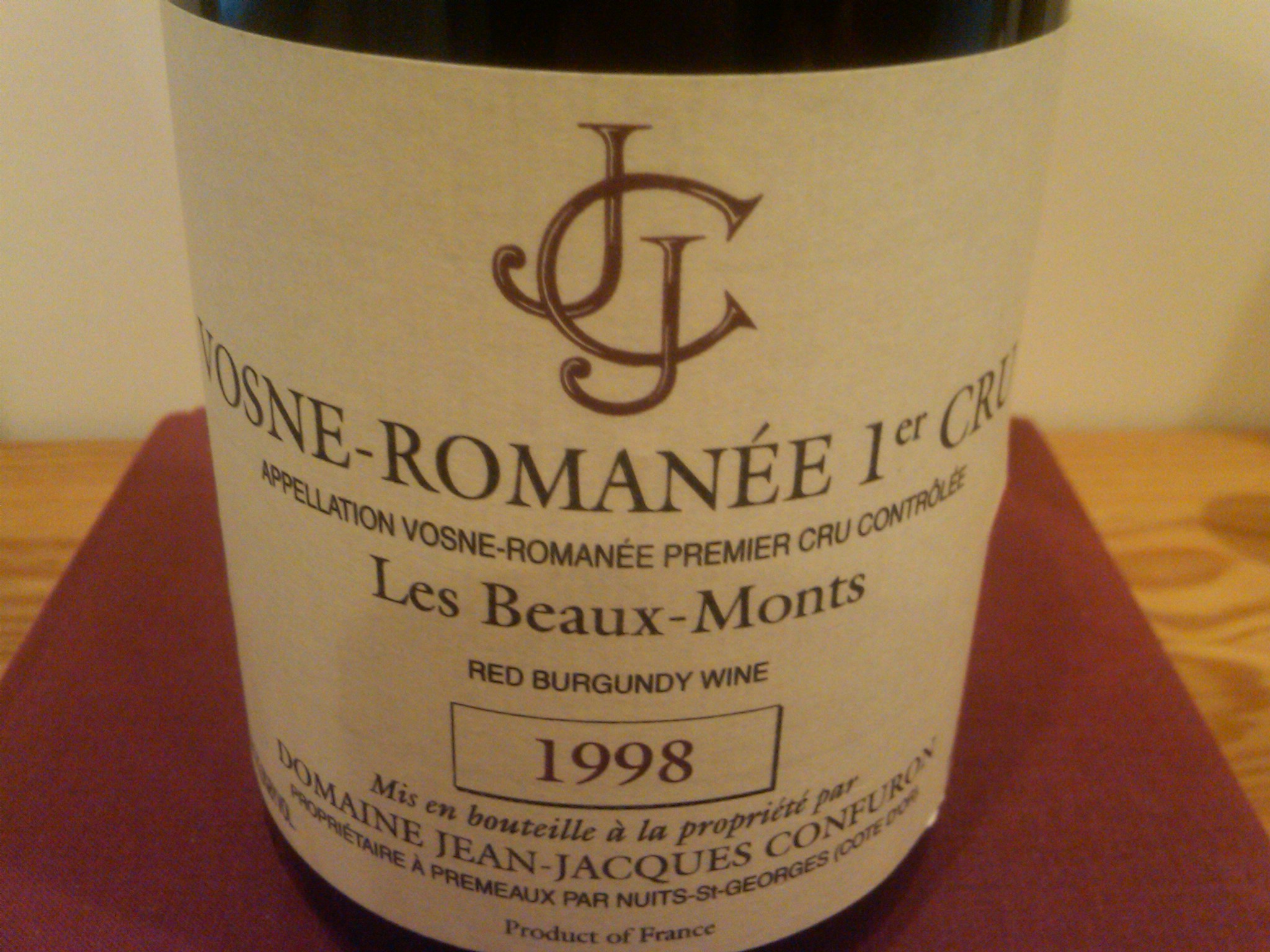 Jean-Jacques Confuron, Vosne-Romanée, Les Beaux Monts 1er Cru 1998 Published 12/23/2012 at 2048 × 1536 in Domaine Jean-Jacques Confuron, Vosne-Romanée Les Beaux Monts 1er Cru 1998 Share this: Email a link to a friend (Opens in new window) Email Share on Facebook (Opens in new window) Facebook Share on X (Opens in new window) X Share on Pinterest (Opens in new window) Pinterest Share on Tumblr (Opens in new window) Tumblr More Share on LinkedIn (Opens in new window) LinkedIn Like this:Like Loading...